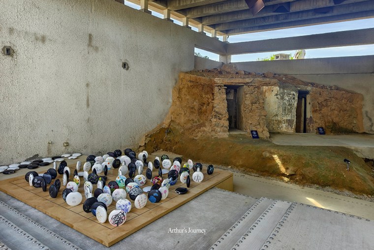過往作為兩岸對抗的最前線,特殊的軍事據點、坑道是馬祖典型的戰地風光,這些軍事據點隨著時代轉變而廢棄,而今國際藝術展讓旅人閱讀這些冰冷隱秘的雕堡曾經承戴無數青春、驚惶與希望,南竿26據點《海角藝隅》和《不是誰的棋子,我們是…》都是其中的代表性作品,以島上居民創作的黑白花瓶為素材佈置於棋盤上,富有想像力的意象對抗被簡化的意識形態,也意味著島民共同將彼時軍事據點轉化為承載過往的載體 。