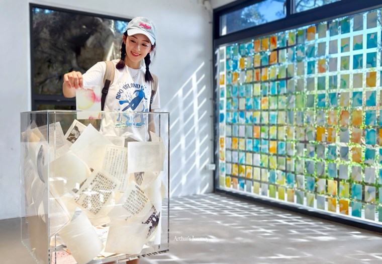 ▲南竿的 53 據點有兩件書信藝術作品,《馬祖島來信》由日本藝術家狩野朋子與中坪多惠子策劃,把過去那些從臺灣寄到馬祖、或者從馬祖寄回臺灣的軍旅書信徵集起來,現場還可以讓旅人書寫、寄出屬於自己的明信片,讓作品不只能看,更能與歷史對話。《家書》則在地下碉堡,特別用感濕油墨與滴水的裝置,信件的記憶時而浮現、時而隱沒,記錄過去離散、重聚與戰地生活的心緒。