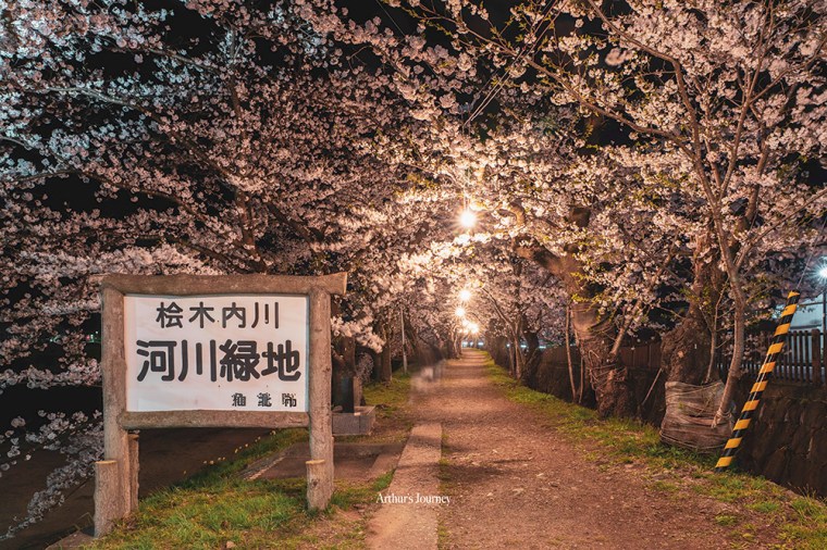 角館除了枝垂櫻和武家古宅,從武家屋敷小路往西步行約2分鐘左右,就會迎面碰上檜木內川錦簇綿長的花海,檜木內川呈平緩弧狀流經角館,堤岸兩旁遍植染井吉野櫻,綿延約兩公里,約有400株染井吉野櫻是1934年為紀念明仁天皇誕辰而植,如今也被為國家指定名勝,與武家屋敷一同入選「日本櫻花名所百選」。每年4月中角館會舉辦「角館櫻花節」,檜木內川堤和武家屋敷通都會在夜晚點燈,夜櫻又是另一番風情了。