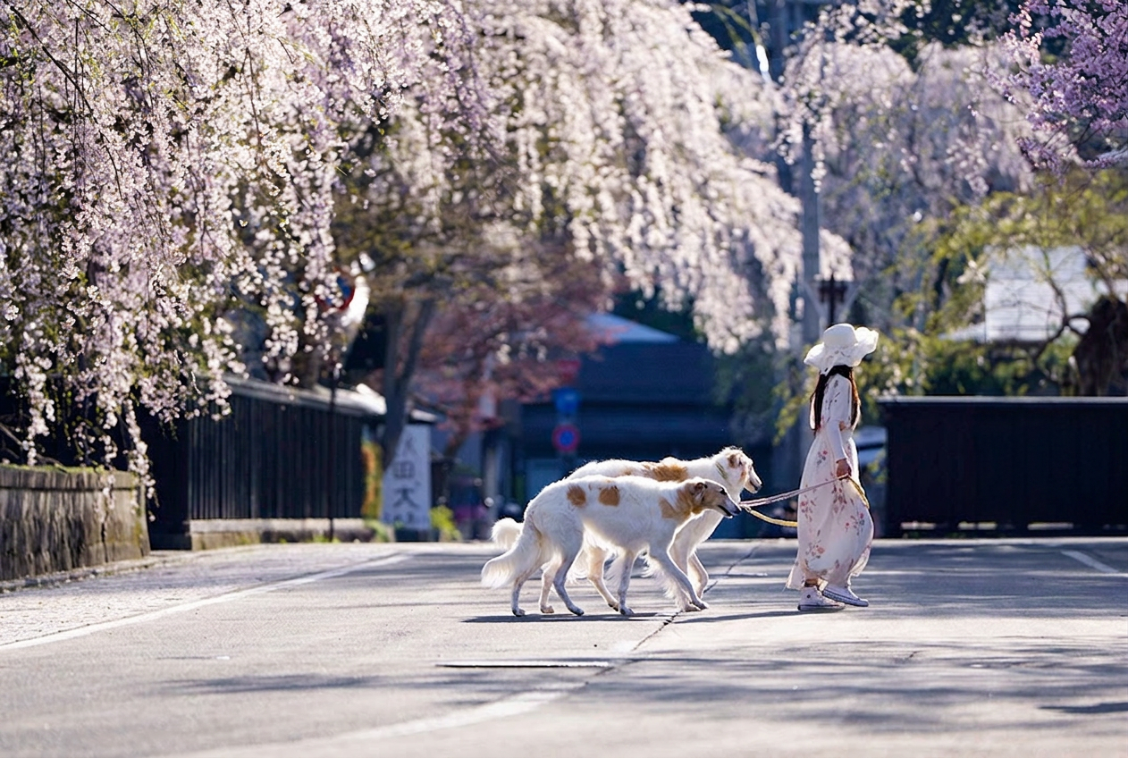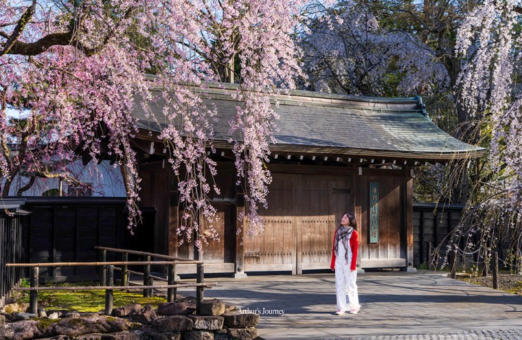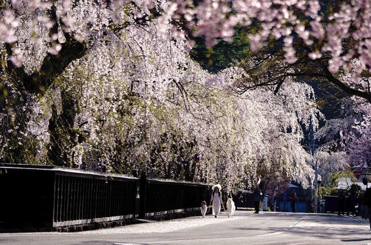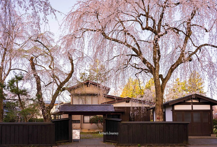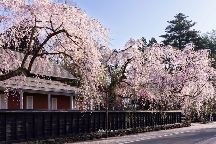 300多年前的日本可不像現今有JR和新幹線,遑論高速公路和飛機,角館和京都之間山脈阻隔何其遙遠,在那個交通不便而且社會劇烈動盪的年代,遠嫁角館的富貴人家少女,想穿山越嶺回京都娘家何其困難,也有可能餘生都無法再回到她生養的地方,那麼陪嫁而來植於庭院的枝垂櫻,便是她思念故鄉的慰藉,所以我說這是一個彌漫著思念的小城,就像枝垂櫻纖細綿長的花穗,春暖花開綻放的是思念的長河,而據傳藩主為讓妻子一解鄉愁,分贈枝垂櫻在角館各個角落開枝散葉,彷彿滿城思念伴隨著濃烈愛意散播開來,角館的枝垂櫻交織著思念的鄉愁和溫柔愛意。