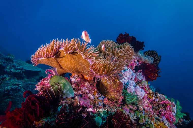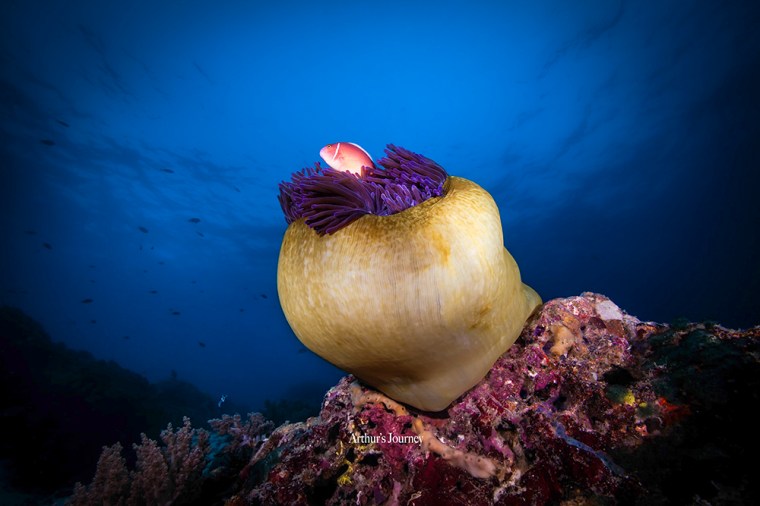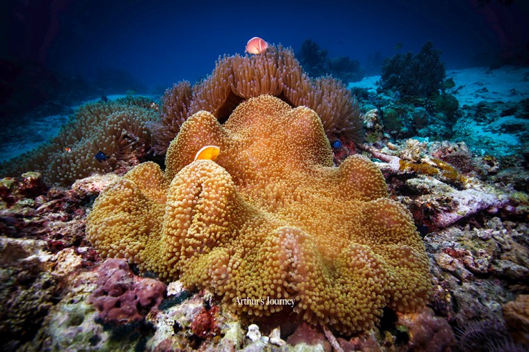 不過巴里卡薩隨時可以遭遇的傑克魚群(Jackfish)從不會讓廣角鏡頭失望,不管是在島嶼西側的巴里卡薩海洋保護區(Balicasag Marine Sanctuary),直下200公尺的大斷層、比人還大的海扇,還會遇到梭魚群(Baracuda)和許多海龜,都適合用廣魚鏡頭拍攝。還有海中常見的小丑魚(Clownfish或Anemonefish),各種類型的小丑魚和牠們各式各樣的家,也是我喜歡用廣角拍攝的主題,平凡卻非常療癒。