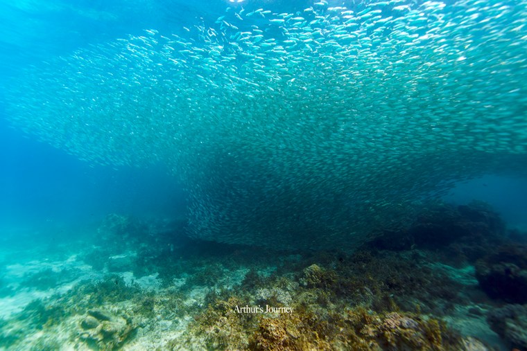 除了巴里卡薩島上的潛點,其實在薄荷島邦勞島週邊也有更多潛水地點,水清沙白的淺灘地區適合進行潛水課程,有些地方有常駐的沙丁魚群環繞,沙丁魚風暴無比壯觀,也都是使用廣角鏡頭的場域。