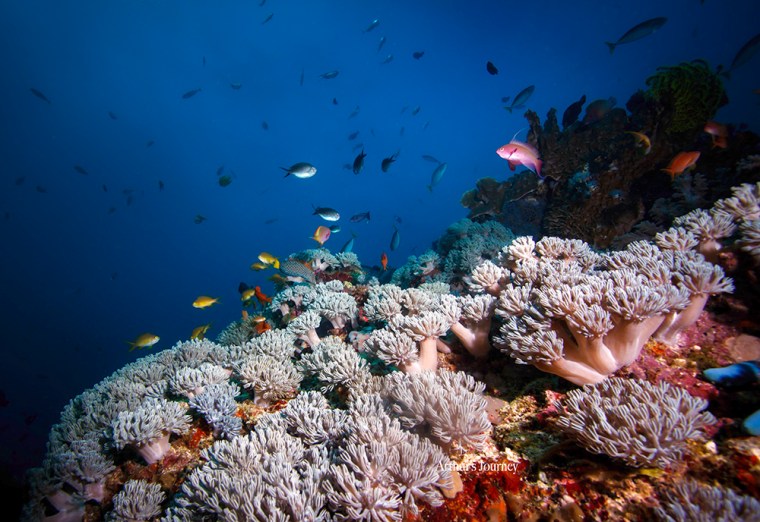 像這樣能見度佳水流相對穩定的環境,對初學和中級潛水員非常友善,也很適合水底攝影,這樣的環境我喜歡帶廣角鏡頭下水,可以記錄豐饒的水下生物和壯麗地形,而且萬一扶老太太過街累積的福報大爆發,與鯨鯊、魟魚迎面擦身而過時,可以隨時用廣角鏡頭捕捉難得一見的畫面,只可惜這畫面不曾發生過,但總是有備無患,安慰自己那一刻總會到來吧!